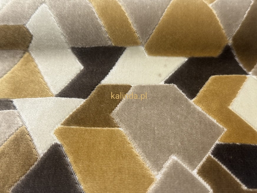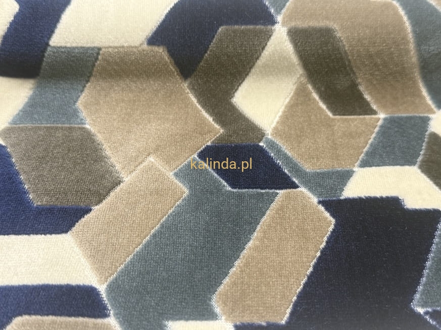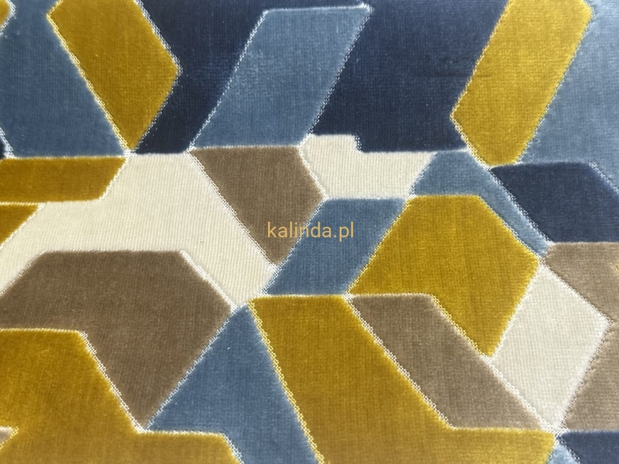 Tkanina obiciowa CALEIDO – nowoczesny plusz z geometrycznym wzorem 3D